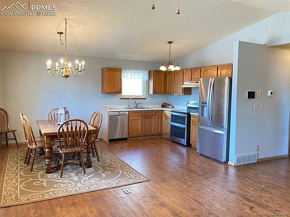 Make sure you see this great bi-level home with 4 bedrooms, 2 baths and 2 car garage located close to schools and bases. NEW INTERIOR PAINT ON THE MAIN LEVEL AND IN THE LOWER LEVEL BATH. Enter the foyer where you can go up to the main level or down to the lower level. At the top of the staircase, you are greeted with the bright living area highlighted by vaulted ceilings and warm laminate flooring. Enjoy family time or entertain here with the living room, dining area and kitchen in one spacious area. All of the SS kitchen appliances, to include a double oven, do convey. On the main level is the large master bedroom with a walk-in closet and access to a private deck (16'x8') through a slider. You'll love the great views of Pikes Peak from the deck!! Adjoining the master bedroom is a full bath with another entry from the hallway. A 2nd bedroom completes the main level. The spacious lower level family room, infused by natural light, boasts a wood-burning fireplace. Seller is offering a carpet allowance for the family room! Bedrooms #3 & #4, plus a 3/4 bath and laundry area complete the lower level. Spend some time in the beautiful back yard gardens and you can relax or entertain on the back patios and deck. Store your outdoor equipment and all those extras in the storage shed. This home has many upgrades to appreciate: New roof/gutter guards in Aug 2018, central A/C, Vivint security system, water softener, reverse osmosis water in kitchen, sump pump, garage workbench/2 metal shelving units/wooden cabinet, 2 SunSetter shades, window blinds and curtains (except M BR). Low taxes and NO HOA!!! See it today!