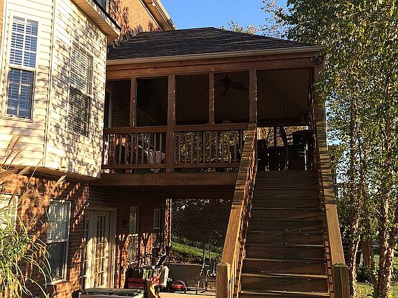 NEW PRICE!! New Roof! New Hot Water Heaters (100 gallons total)! New Gas Fireplace!! Beautiful updated 4 bedroom/3.5 bath all brick home with hardwood, tile, and carpet floors. Freshly painted and new appliances. Granite kitchen and master bath. Walkout basement onto patio and large yard, covered deck off the first floor den. Bar in basement with poured concrete top, bar on deck. Several built-in custom shelves/cabinets. Veteran's Park Elementary School District. Backyard backs up to open greenspace on Hickman Creek. REALTORS with interested buyers - call me for more information. Close to Veterans Park entrance - best city park in Lexington!