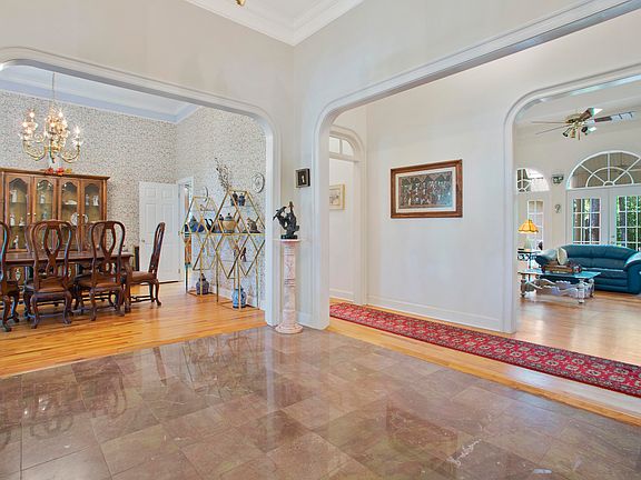 Experience the luxury this custom built home has to offer. The ceilings are soaring and range from 9 to 16 foot. Upstairs has been built out and offers a tremendous amount of extra space. Enjoy a drink from the wet bar while relaxing by the gas fireplace this home offers. Gourmet kitchen guarantees you have room for all of your get togethers. The kitchen features an island, hard surface counter tops, and separate breakfast and dining rooms. Home sits on 3 well manicured lots forming a very large corner lot. Mature pear trees on property as well as many other fruits and vegetation. Circle drive allows for easy entrance and exit and the long drive leads to a double garage with golf cart parking. Come see this custom beauty today. No expenses were spared on this build.