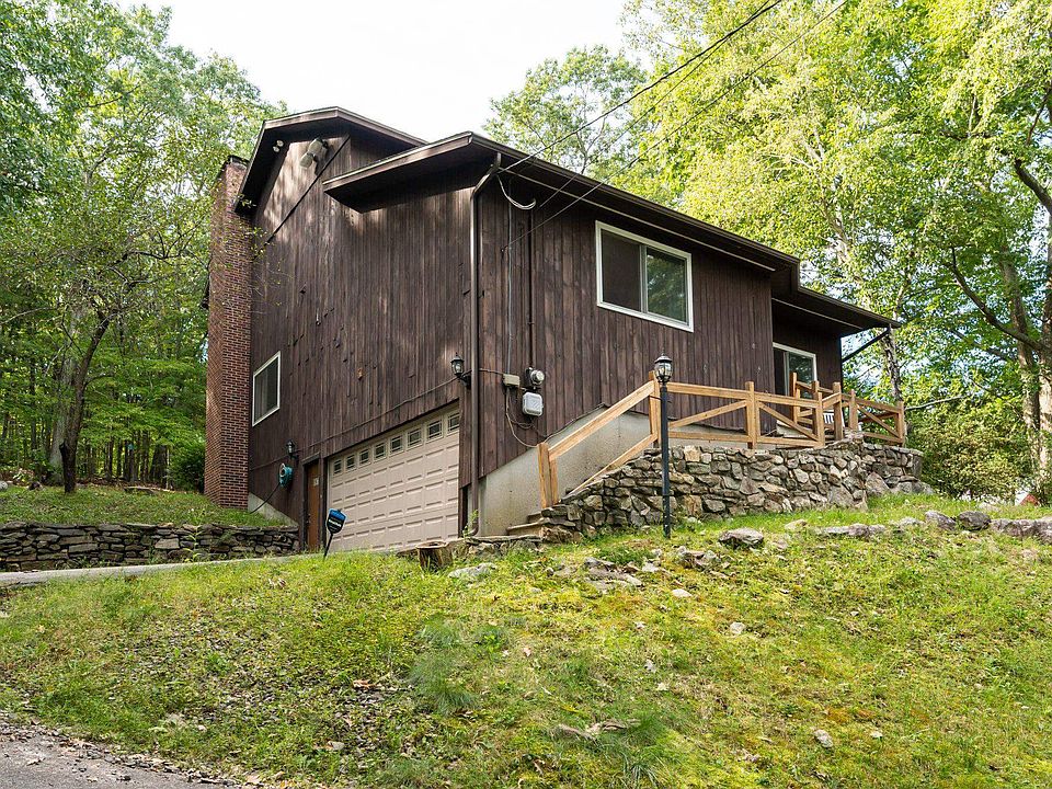 Welcome home! When you enter the first floor you will be greeted with an open floor plan and beautiful new hardwood flooring thruout the lower level. Large open kitchen with loads of cabinets, counter top space and dining. Great space for entertaining as the living room with its built in shelving, sprawling cathedral ceilings and floor to ceiling stone fireplace will set the mood. Also on the 1st floor is an updated dual entry full bathroom with access to the 1st floor master bedroom. A bonus room that could be used for nursery,home office, study whatever you desire. Upstairs you will find 2 additional bedrooms both with great closet space. A full bathroom w/attached laundry area complete the 2nd floor. Many updates have been done. You will find a large garage with tandem parking allowing upto 3 cars and plenty of off street parking. All this on a 2.8 private acre lot. 16 newer (2.5+/- yr old) Anderson Windows. There is a Security system in place and can be transfered, ask for details. Backyard offers a patio area in the back for those cool fall nights.