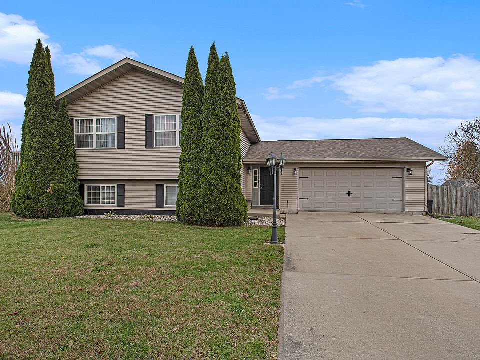 RURAL! NEW PRAIRIE SCHOOLS! Located within city limits but you'll appreciate the serene feel of country living year round. Surrounded by farm fields, this 3 bedroom, 2 full bath bi-level is looking for someone to call this home. Spacious foyer off the front entrance and garage. Upper level has updated eat in kitchen complete with breakfast bar and sliders leading to the perfect deck for outside dining and relaxing. Living room, two bedrooms, and a full bath conveniently located upper level as well. Lower level is made for entertaining along housing the third bedroom and full bath. A HUGE statement bar, this area could be a dream man cave or rec room with walk out access to covered side patio. Fenced in back yard. Bonus brick patio to enjoy amazing sky line views. Attached 2 car garage, all sitting on nearly 1/2 acre lot. Take a look!