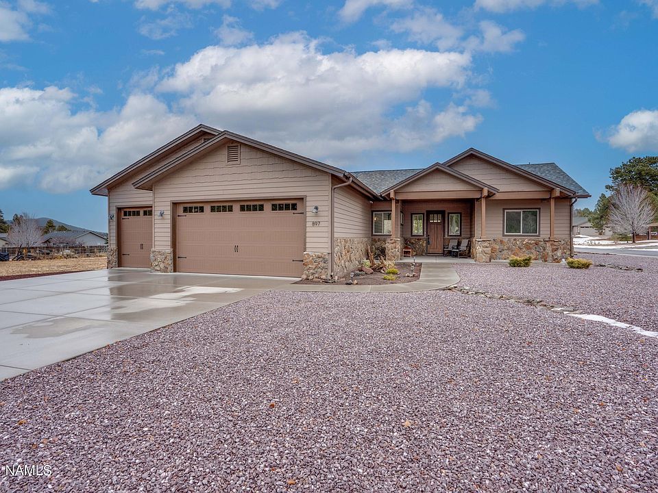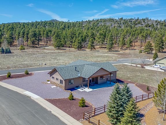 Located in gorgeous Highland Meadows less than 3 miles from historic downtown Williams, this 3 bed, 2.5 bath features rich, engineered hardwood floors, vaulted ceilings in the living room and primary suite, 8 ft doors, quartz countertops, professional landscaping plus an automatic sprinkler system, and an on-demand tankless water heater. Perched on a quiet, premium cul-de-sac corner lot, you'll take in stunning mountain and forest views from the huge front and rear covered patios. Enjoy tons of room for tools, toys and vehicles in the oversized 3 car garage. There's so much to do, so incredibly close; play a round at the beloved Elephant Rocks Golf Course, catch rainbow trout in Cataract Lake, or take the Grand Canyon Railway to the Grand Canyon's south rim!