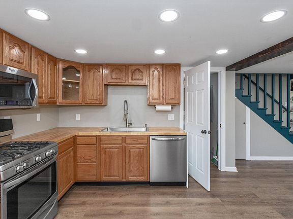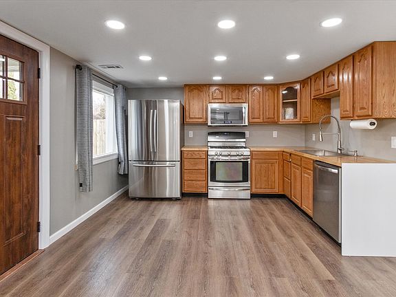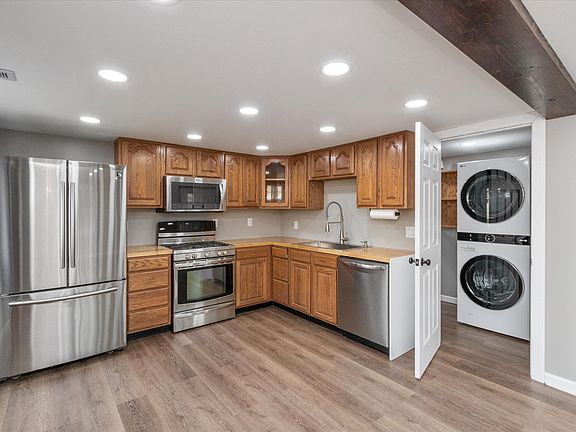 Beautiful 2 bedroom bungalow in Franklin! Home has been totally updated! All new kitchen w/stainless steel appliances. New 1/2 bath main level with high-end/full size stackable washer & dryer included. Upstairs has New full bath and 2 bedrooms with hardwood floors. Home has NEW Roof, Siding, windows (except 2 front picture windows and bathroom window), 6-panel interior doors, paint, trim, LED lighting both exterior doors, Water heater and sewer line and 200 amp service (both are buried). A/C 2 yr old. Home sets on .30 Acre with most of the lot in the front yard. 2 car carport included. On the back of the house is a 1 1/2 story 28x24 storage barn/work shop with 2- 20 amp circuits, work benches and shelving and has stairs to a loft area.
