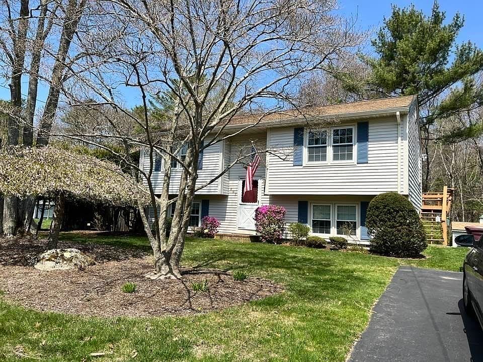 Tucked away at the end of a quiet cul-de-sac, this 4-bedroom, 1.5-bath split-level home sits on a picturesque half-acre lot offering peace, privacy, and potential. Enjoy the comfort of central air and the efficiency of gas heat by baseboard. With two bedrooms on the upper level and two more on the lower level, there's room for flexible living. Step outside to a spacious wooden deck with built-in seating—perfect for entertaining guests or enjoying peaceful evenings. The property also features a 7-zone sprinkler system to keep the lawn lush. The walk-out basement also includes an unfinished bonus room waiting for your finishing touches. With a little refreshing, this home could truly shine!