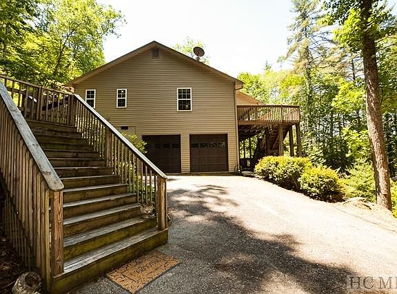 MOTIVATED SELLER-NEWLY TRIMMED TREES-HOME WITH LAKE AND MOUNTAIN VIEWS Will consider all reasonable offers in order to close this season! New Heating and Air system installed, New Garage doors, New Water Pump and Pressure tank move in ready!! Beautiful 4 bedroom home is located on Lake Glenville which is three miles North of the Cashiers Crossroads at Highway 107 and 64. The lake is the highest lake at 3500ft East of the Mississippi. It has twenty six miles of shoreline and is fed by natural streams and waterfalls. Speaking of waterfalls there are several you can visit without ever leaving your boat. This beautiful lakefront home has 4 bedrooms, featuring complete separate living accommodations with wheelchair access on the lower level. A stream runs through the property passing a raised patio with a small waterfall producing soothing water sounds, continues past an Artesian well rated at 30 gpm, turns at pavilion then flows to the lake next to a private 50 ft dock. Has 1300 sq ft covered and uncovered deck, oak hardwood floors, French doors and ceiling fans throughout. Dedicated home theater, temperature controlled wine cellar with custom built wine racks. The media room features wifi internet and landline phone. Canoe included and all furniture is negotiable. Come to the mountains were life is Good!