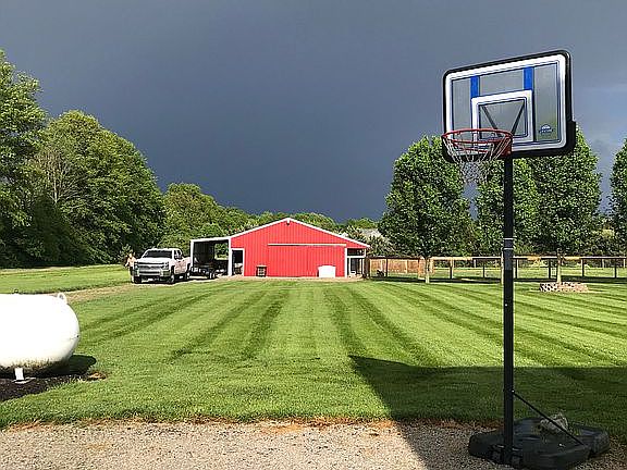 Amazing opportunity on this 6 acre impeccable estate w/ 4 BR and over 4400 SF! Tree lined driveway leading up to a beautiful brick facade with full wrap around porch! Gleaming hardwood floors cover the entire first floor! The kitchen has plenty of natural light, large island with seating, granite countertops and stainless appliances! Oversized master bedroom with hardwood floors, large walk in closet, soaking tub and shower. A Full finished basement is an entertainers dream space! Stepping out of the back door is breathtaking! Spacious deck offers full privacy and views out into the land! 33ft diameter pool with party deck is sure to host many swim parties! Hot tub stays too! 36x30 Barn w/ water and electricity has 2 stalls for animals leading to over 2+ acres of electric fenced pasture!