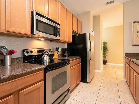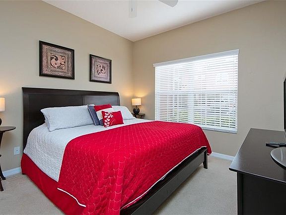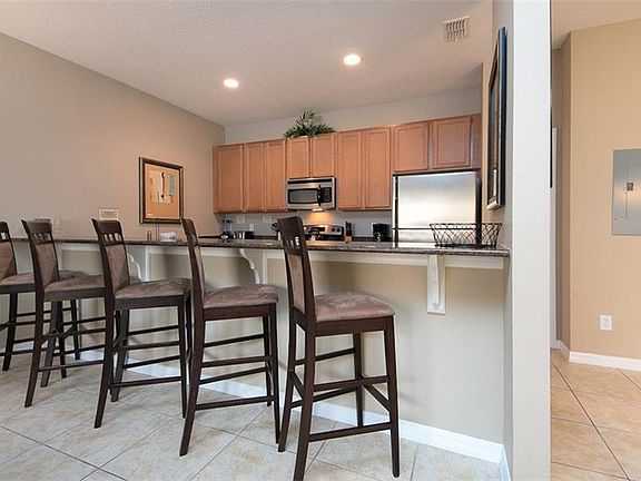 WOW! Come and view this gorgeous town home with private pool located in beautiful Paradise Palms Resort. This fabulous resort is located only 5 miles from Disney and is ideally located close to Margaritaville, Sunset walk, restaurants, supermarkets and shops! Paradise Palms is a gated and guarded premier community which offers a 5000 sq ft community pool with water fall, slide, 2 hot tubs, 9500 sq ft clubhouse which offers a fitness center, sauna, movie theater, game room, internet lounge, basketball, volleyball, childrens playground, tiki bar and a shop. This beautiful town home is close to the clubhouse! Open the door to the spacious entry hall, the second master bedroom is on the right with a beautiful bathroom too. The gorgeous kitchen has stainless steel appliances and granite counter tops too. The family room is very relaxing with a large sectional sofa overlooking your private SOUTH FACING pool. On the second floor there is the spacious master bedroom with en suite bathroom, 2 other bedrooms and bathroom. The laundry is also located on the second floor. All bathrooms have granite counters too! This gorgeous home is zoned for short term rentals, but will also make a wonderful 2nd home or primary residence. This home is sold fully furnished - don't miss this opportunity to own your own piece of paradise in Paradise Palms!