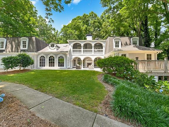 If your home is your castle, this is the perfect home for you. Situated on over an acre on the 15th Fairway of Cherokee Golf Course, this lake view home features fine millwork and molding, a conservatory great room, 2 story family room and an outdoor balcony overlooking your beautiful flat backyard with golf course views beyond. The oversized master bedroom on the main level features a private outdoor deck for relaxing, completely updated master bathroom with soaking tub, oversized shower, his and hers closets, and custom barn doors. There is an additional bedroom and updated bathroom on the main level for guests, office space, or nursery. The kitchen inspires gourmet cooking fit for a king or queen and is adjacent to a formal dining room and living room for regal entertaining. The upstairs level features additional bedrooms with updated private bathrooms and views to the downstairs family room with large fireplace. There is a finished basement with kitchenette, living room, separate bedroom and bathroom, just perfect for guests or in-laws. The home sits back on the lot, with a long driveway and extra parking areas for guests and royal carriages. This home has many exciting and interesting special features. Come by and enjoy this majestic home in the heart of Sandy Springs!