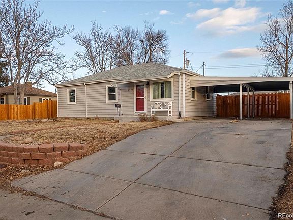 Fantastic Ranch floorplan on a large lot with upgrades throughout! This home welcomes you in with a functional layout with the family room and dining area flowing together and leading into the recently updated kitchen with granite counters, freshly painted cabinets and Stainless Steel appliances. The newer luxury flooring extends throughout the main living area and down the hallway where you will find three good size bedrooms with newer carpet and paint! Main floor ranch living at its best with no stairs throughout for easy access around the home. The spacious backyard is a perfect setup for entertaining with a large concrete patio, gazebo and two sheds for additional storage space. Plenty of parking with an attached carport, extending driveway and off street parking. Located in the heart of Thornton, you’re close to several parks, Pelican Ponds and Open Space, shopping, dining and just short drive to Denver Premium Outlets, and Orchard Town Center. Easy access to all major routes and Light Rail for convenient commuting to DIA, Denver and more. Don’t miss out on this updated Ranch home that is perfect for any homeowner!