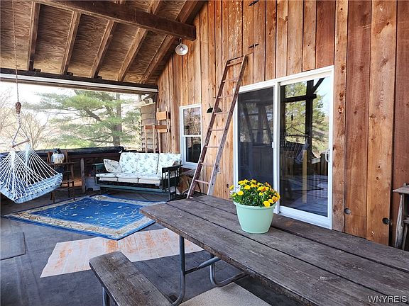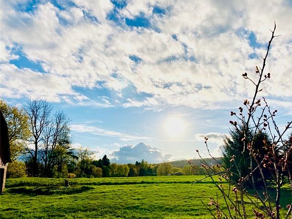 Looking for acreage but want to be close to amenities? This two story 3 bedroom 2 bath home has almost 4 acres, shed, carport and a large barn! The living dining room combination is open to the kitchen and has beautiful hardwood floors. There is a spacious master bedroom on the main floor and a full bath. The upstairs features 2 bedrooms, full bath and a 2nd kitchen...perfect for in law set up. There are sliding glass doors upstairs to a large covered porch built in timber frame style. Perfect spot to kick back and relax. A newer large shed, lots of fruit trees (peach, apple, pear), berry bushes and a beautiful yard to enjoy. Area that used to be inground pool has been an organic garden for many years. The wood burning stove helps keep the home warm and cozy. Over the years this home has had many improvements. Some include insulation, drywall, electrical, plumbing, flooring, windows, boiler for hot water bb 2016, hot water heater 2023, septic 2017. Metal roof on barn. Prior to closing seller will be removing some of the plants in the yard. The outside of the home with heated living space was measured and is more than what is on tax records. Approximately 2100 sq. ft.