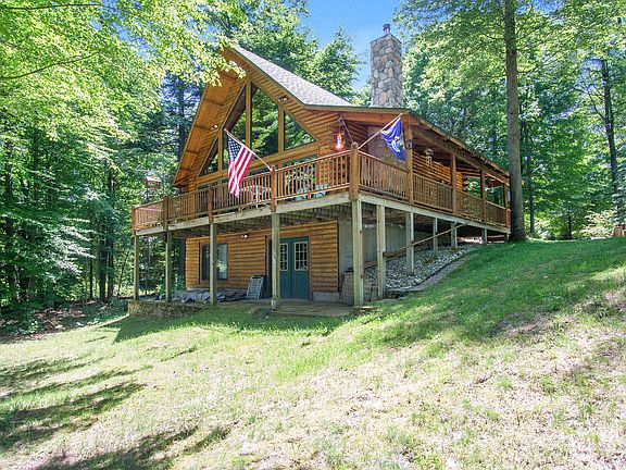 Private Acker Lake water frontage has a beautiful custom built log home by Ken Hill. Enjoy kayaking, fishing, boating, and the wrap around deck or site by your Lake Superior stone fireplace. Go snowmobiling in the nearby Manistee National Forest. Get away and have the log home on a lake that you've always dreamed about.
