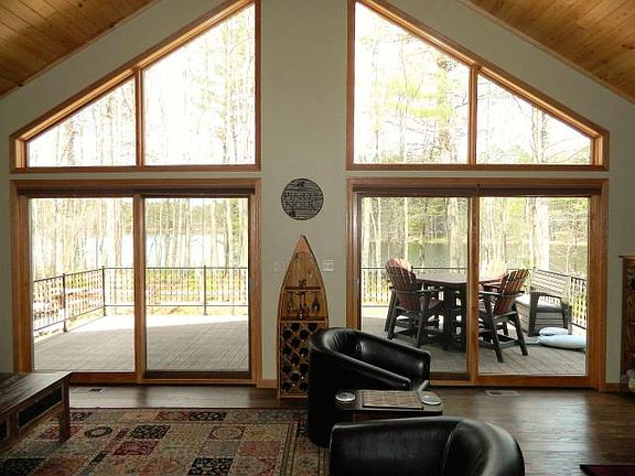 Private setting, yet close to town! This meticulously maintained 3-bedroom/2-bathroom home is ready for you to move right in. Convenient main floor living with a beautiful open concept. The living room has T&G cathedral ceilings, large windows to take in lake views, and a gorgeous stacked stone woodburning fireplace. The master suite includes a walk-in closet and attached bath. The spacious kitchen has plenty of cupboard and counter space. A lake-side deck, large patio area, and covered porch offer lots of room to relax outdoors. The home sits on almost 3 acres with 248' of frontage on peaceful Crescent Lake. Natural gas and central air are just icing on the cake! You'll want to see this one today!