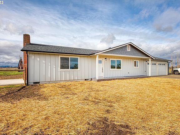 Looking to grow food/crops or have some animals? Check out this newly renovated, 3 bedroom, 2 bath, single-level home on 4.91 flat, usable acres! Property is surrounded by farmland. New roof, vinyl plank flooring, heat pump, quartz counters, kitchen cabs and island, paint, and more! Two-car garage and huge greenhouse frame on slab! Plenty of parking for all your toys and equipment!