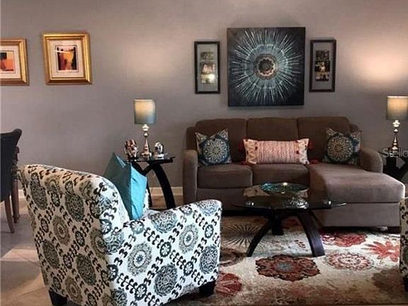 2 Bedroom, 2 Bathroom Condo in the gated community of Champions Gate with 1-car attached garage. Kitchen has energy star stainless steel appliances, granite counter tops and upgraded 42" cabinets. Large Master Bedroom with two walk-in closets. Master Bath has large garden soaking tub, double vanity and separate shower. Large second bedroom with it's own bathroom. Large screened in patio with no rear neighbors. Access to the Oasis Clubhouse with Restaurant, Fitness Center, Yoga Studio, Movie Theater, 2 pools, Lazy River and Water Slides, Golf Course and Tennis Club. 24/7 maintenance provided by Blue Sky Property Management. A/C filters are included in rent and will be delivered to your front door on the first of each month. Pet Friendly Owner pays for water. Renter pays for electricity and cable. No smoking.