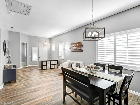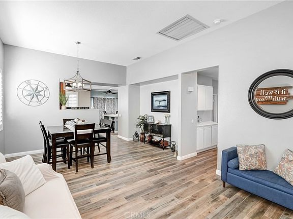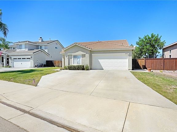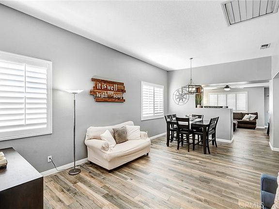 Beautiful one story home on a quiet cul de sac street, with no HOA and low property tax in the desirable Orangecrest Community with top-rated schools: Tomas Rivera Elementary, Amelia Earhart Middle School and Martin Luther King High. Centrally located, nearby shoppings, Gless Ranch Farmers Market, Grove Community Church and Orangecrest Community Church, Orange Terrace Park, and 215 and 91 freeways. This move in ready home features 3 bedrooms, two bathrooms, and attached 2 cars garage. The entry opens to formal living and dining area, an office, a family room with fireplace, an open kitchen with island and lots of cabinets, a master bedroom and master bathroom with a soaking tub and separate shower plus a large walk-in closet, two spacious bedrooms, a full bathroom, and a laundry room. Wood look tile throughout the house, and brand new carpet in the bedrooms, and in the office, a whole-house fan, new light fixtures, ceiling fans, wood shutters, and high ceilings throughout. A must see
