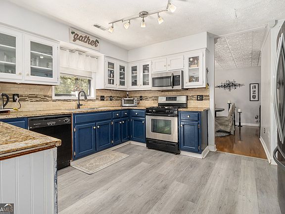 Stunning home in Elon Farm subdivision with lots of recent updates. Details include the bookshelf in the living room, newer luxury vinal and hardwood flooring, newer interior paint, crown molding, ship plank walls int hallway, newer windows thoughout home, newer outdoor siding, newer front and back porch and newer panty. Both bathrroms have been updated. Enjoy your private fenced backyard that is perfect summer BBQs and you can sip your drink of choice entertaining guests. This is the perfect home for the first time homebuyer who would like to be a short distance away from restaurants, shops, amusement park, and a quick drive over to Atlanta's airport. Don't wait to view, this is a good home ready to go!