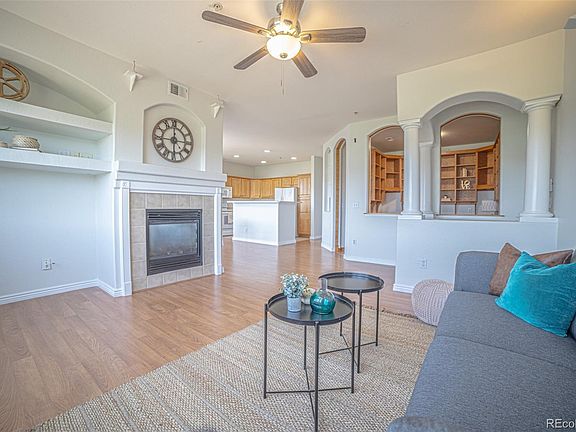 This amazing and well-appointed 2 bed, 2 bath condo offers a convenient and low-maintenance lifestyle, perfect for those seeking comfort and ease. Located in Thornton just a short walk to the newly paved bike/walking path, Niver Creek Open Space & North Creek Community Park, this thoughtfully designed condo has all that you need. As you enter the freshly painted home, you are greeted by a welcoming open floor plan, including a large living room with a gas fireplace and built-ins for TV/entertainment space. In a world where working-from-home is so needed and necessary, this home has a spacious office space with plenty of desk space and built-in shelves perfect for the work-from-home lifestyle. The kitchen and dining room overlook a beautiful view of the bike & walk path/meadow. Down the hallway is the washer/dryer (included), as well as the full-size guest bathroom and bedroom. The primary ensuite has an attached full-size bathroom with soaking tub, along with a walk-in closet. Don't forget to check out the oversized garage (unit 201) located just below the unit (bottom of stairs). You can park in the garage, as well as in front of the garage door (1 additional parking space). This is a great home with lots of useful space and conveniently located. Welcome home...