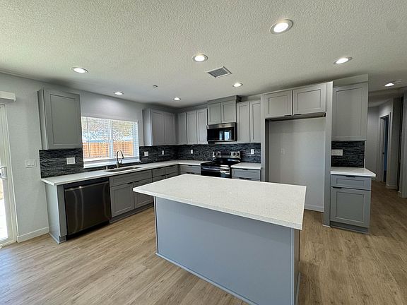 Newly Remodeled in 2024,1580 sq ft., 3 bedroom and 2 bathrooms. Open Floor Plan boasts a grand entry into the main Living area with elegant open Kitchen with Quartz counter tops, Black Stainless Steel Appliances, Grey Cabinetry, full size Island and Rock Veneer backsplash. Features include, recessed lighting, custom flooring, ceiling fans, indoor laundry. Huge Master Suite with access to your rear yard and large walk in closet. Master and Hall bath are complete with Quartz countertops and tile surround tub/showers. Home is Energy Efficient with OWNED PAID OFF SOLAR! Home is beautifully located in central California City.