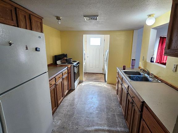 This three-bedroom, two-bath farmhouse sits on 15 acres and requires some tender loving care. The property is connected to rural water and has a well for the outbuildings and pastures. Additional structures provide ample storage space with electricity, and there's an oil changing pit. The property is currently being cleaned up. Please note that gates, the carport, dog kennel panels, and the building are not included in the sale. New water lines from the well to the outbuildings were installed in Fall 2023.