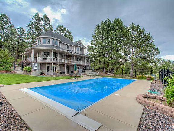 Gorgeous Victorian home with wrap around porch, all the amenities and picturesque views of Pikes Peak. The walk out basement is an entertainers dream complete with pool, wet bar, theater system, outdoor speakers, and steam shower(basement bath also has washer/dryer hook up). The master boast two walk in closets with brand new shower, claw foot tub and laundry. Kitchen is updated with new granite, refrigerator, oven, cook top, convection microwave, and pot filler. This home is efficiently heated with radiant in floor heat, and cooled with a room by room mini split system that can also be used as a redundant heat system. Additionally the outbuilding is a 3 stall oversized heated garage complete with a bathroom, upstairs you will find a 915 sq ft apartment perfect for running your at home business, guest, family or even some additional income. The apartment has 1 bed and 1 bath(not included in total on mls) with a full kitchen, laundry and balcony with a separate entrance.