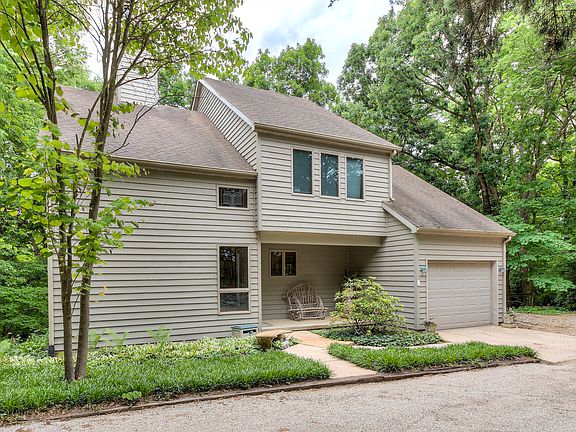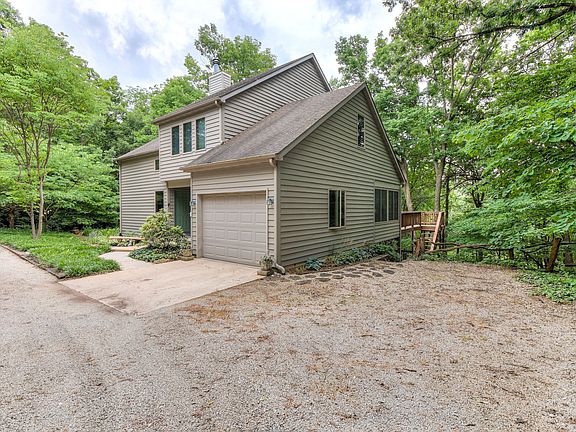 Nature lovers paradise on 7.74 acres.Currently a 2 bedroom home, there are several option to expand to accommodate more bedrooms.This well designed home features geothermal heating/cooling & provides exceptional views of the timber, landscaping & creek.The main level has hardwood flooring & features a great room w/ fireplace, vaulted ceilings & large windows w/ nature views.The spacious kitchen offers a breakfast bar, stainless steel appliances & granite countertops.The bright dining area offers access to the sunroom & walks out to the deck. The second floor of this home features a loft area looking down over the great room.This level also offers 2 bedrooms, large walk in closet & full bath w/ tiled walk in shower.The lower level walks out to the deck & offers a full bath, large windows & studio area or convert to additional bedrooms & living space.This 7.74 acre homesite features lovely landscaping, trees, Friends creek w/ bridge, a 24'x27' outbuilding w/ concrete floor, power & water