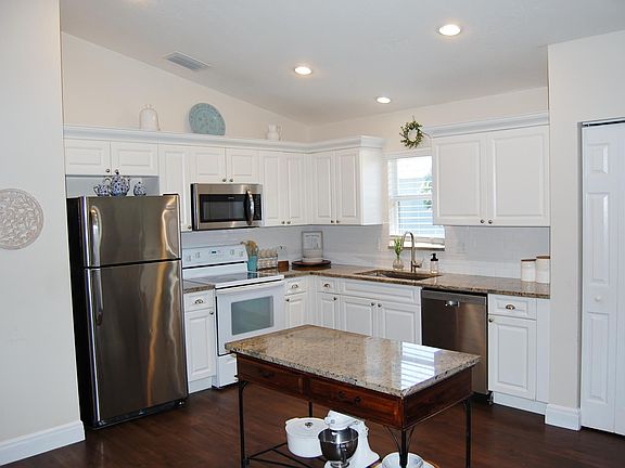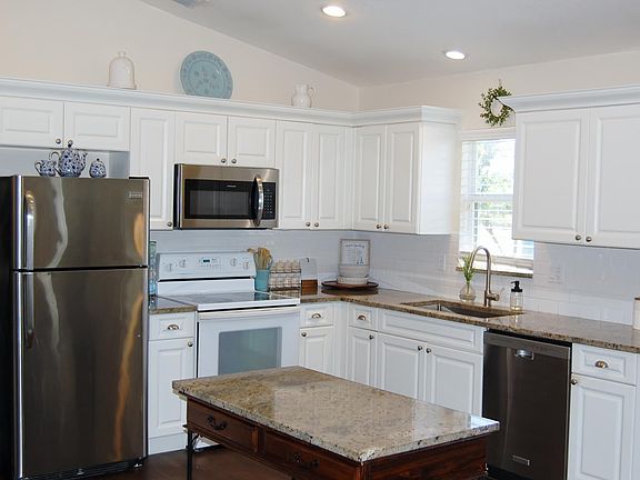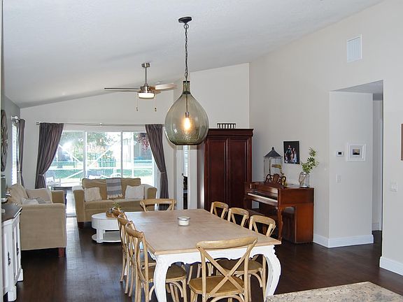 Great 3 bedroom 2 bath + Den with ,Screened Pool. CBS home built in 2002.Great Views of Lake. Beautiful and Durable Vinyl Plank flooring throughout. Open and Bright floor plan. Cathedral and Tray ceilings. Updated Kitchen with granite counters and brand new refrigerator,range and micro-wave. Updated baths, Master bath has dual vanities,separate shower and stand alone tub. Amenities include heated community pool, Clubhouse, fitness center, boat ramp with Ocean Access and RV storage. Low HOA fees include basic cable and WiFi internet. Much more. All sizes approx. Water softener system and Dining Room light fixture not included.