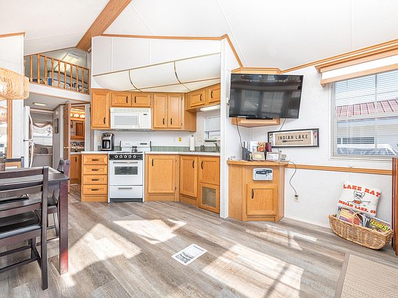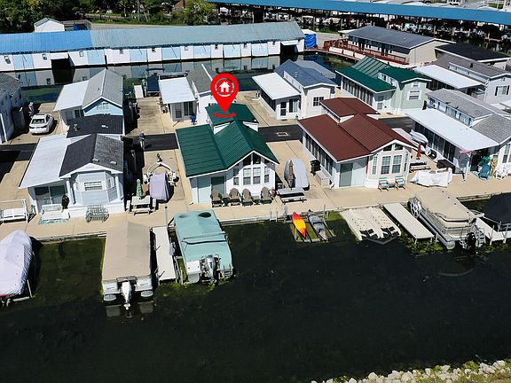 Enjoy low maintenance lake living at Sunny Cove! This 2002 Chariot Eagle Park Model features a new metal roof and some new flooring. The screened in porch adds extra square footage to the usable living area. Just outside your door are 3 boat slips! One with an electric pontoon lift and one with a double jet ski lift. One bedroom on the main floor with 2 sleeping spaces in the loft area. A storage shed allows for storing your fishing poles and tools. Don't miss your chance to be on the Lake this year!