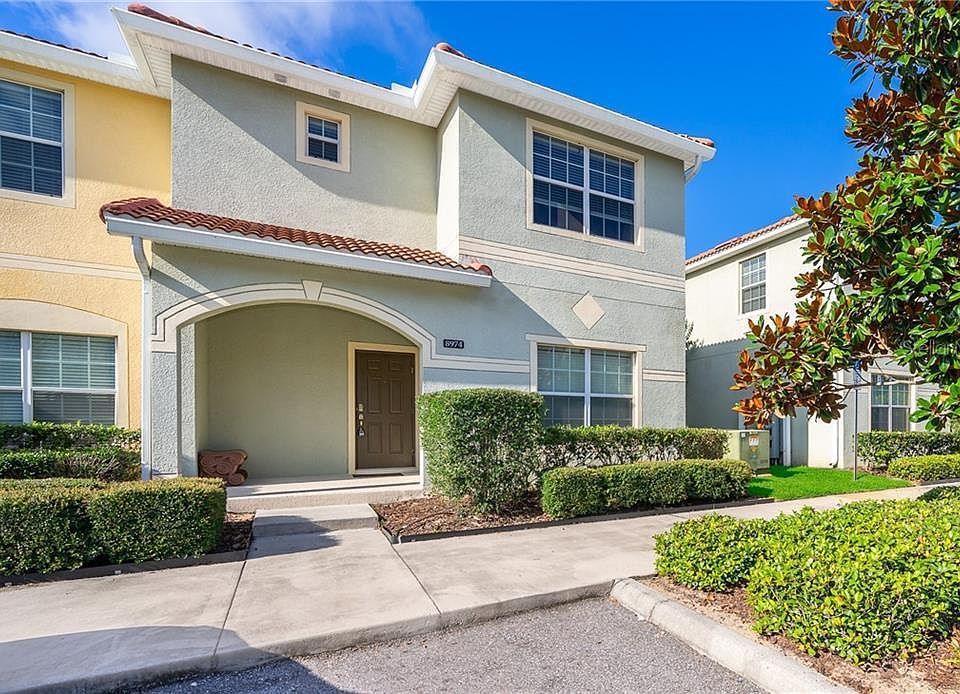 Priced to Sell!! Beautifully furnished 5/4 townhouse with private POOL and EXTENDED PATIO AREA in Paradise Palms Resort, a 24 hour guard gated resort community with many amenities just 10 minutes from Disney. HOA fees include internet and cable tv as well as resort amenities: a 9,500 sq ft clubhouse with waterfall resort style pool, spa and TIKI bar, movie theater, game room, internet lounge, basketball court, tennis court, fitness center, sauna, deli store, and much more. It can be your vacation home or investment home!