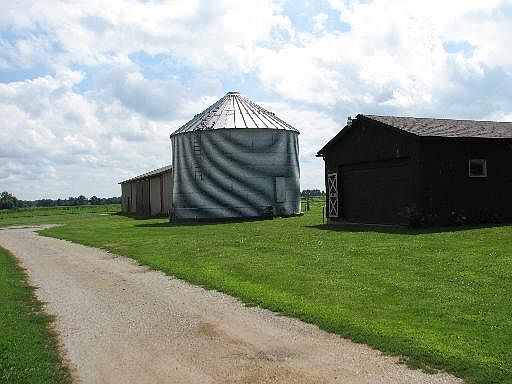 Horses welcome! Well cared for ranch on 2 acres! 40 x 87 pole barn with horse stalls, water & 220. 2.5 detached plus 1 car attached garage. Beautiful setting. Great location. Clean, freshly painted. Updated bath, carpet, newer windows & roof. Grain bin with 10,000 bushel capacity with three phase electric. Move in condition! Property sold "as is".