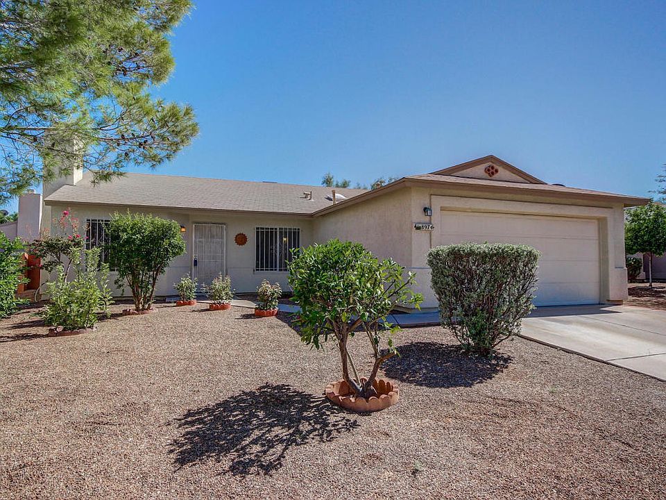Beautiful move in ready home in a great Tucson location! Great floor plan with vaulted ceilings, tile flooring and a stately fireplace in the formal living room. Beautifully upgraded kitchen opens to the family room and offers stainless steel appliances, custom cabinets and granite counters including the breakfast bar. Spacious bedrooms have tile flooring. Master bedroom includes an adjoining bath. Enjoy the warm summer breeze or cool night air in the serene backyard with covered patio, green grass and mature flora! This home is ready for your personal touches! See it today and start packing!