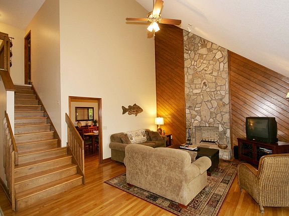 Your waterfront cottage awaits. This beauty has been remodeled and is located on a flat lot with gorgeous waterviews. Hardwood Floors, Great Room with 2 story stone fireplace, stainless steel appliances and glazed kitchen cabinets. Master on Main Floor, main channel views from deck and new pier/gazebo/floating dock. Detached 2 car garage and 2 car attached. Irrigation,Perfect for entertaining.