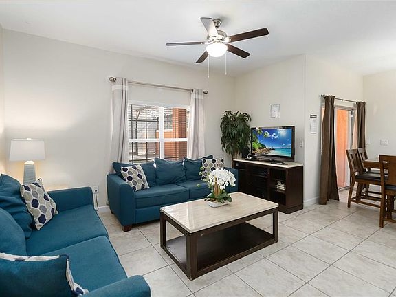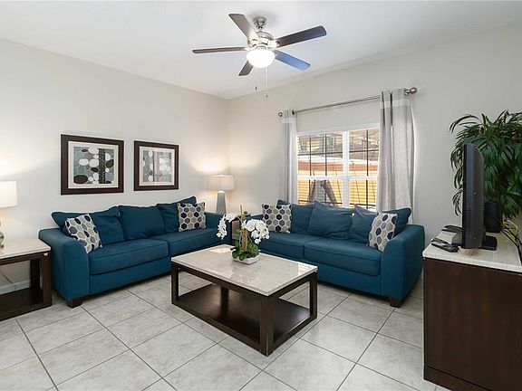 Under contract-accepting backup offers. Don’t miss this incredible opportunity to own a fully furnished 4-bedroom, 3-bathroom townhome in the highly sought-after, 24-hour gated resort community of Paradise Palms—just minutes from Walt Disney World! Perfect as a vacation retreat or income-producing investment. This home is beautifully maintained. The A/C is only one year old, and the private, screen-enclosed, heated pool has a brand new pool heater. You have access to world-class amenities, including a clubhouse with bar and grille, arcade, private cinema, state-of-the-art fitness center, basketball, pickleball, and volleyball courts, a Tiki bar, business center, scenic walking trails, and a large zero-entry heated pool with cabanas and a hot tub. The HOA fee covers cable TV, high-speed internet, landscaping, and trash collection, making ownership stress-free. Conveniently located near major highways, shopping plazas, restaurants, water parks, and only 10 minutes from Disney, this home also comes with strong rental bookings and excellent year-round occupancy—reach out today for income potential and booking details!