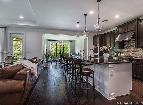 Stunning home, suitable for HGTV! Upgraded Kensington model. TRUE 4/3 with gourmet kitchen, gas stove, double ovens, walk in pantry and dark wood flooring throughout. Covered Lanai with retractable enclosure, spacious backyard on preserve, with room for a pool. Tri-split floorplan, impact windows and doors, Vivant security system, coffered ceilings, custom closets and fixtures, custom decorative walls in great room and foyer, plenty of space to entertain. Great floorplan. Live the Parkland Watercrest lifestyle at an affordable price in a gated, secured community. Walk to new resort style clubhouse, including dog park, walking trail, swimming pool, covered children's playground, fitness center, tennis court and so much more. View today, gone tomorrow! Use show assist. Thank you for showing.