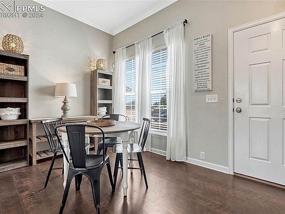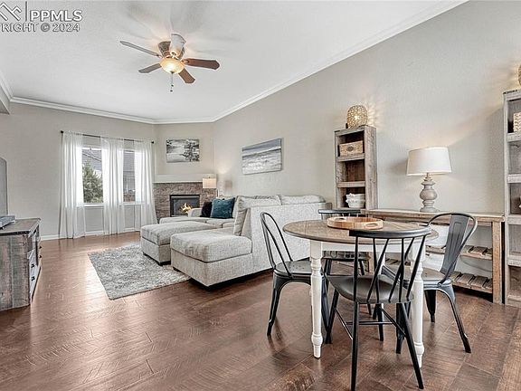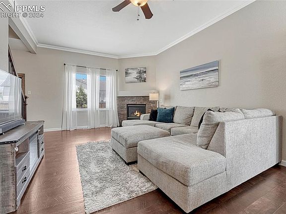 Charming 5-Bed, 5-Bath, well maintained home with Upgrades Galore. This move-in ready, 5-bedroom, 5-bathroom home is just what you're looking for. This home is smartly designed to optimize square footage, and offers everything you need in a functional layout. High-end engineered hard wood flooring flows throughout the main level, complementing the carpet upstairs. The heart of the home is the remodeled kitchen, boasting top-of-the-line finishes and a grand island. Quartz countertops gleam under recessed lighting, while stunning custom white cabinetry (with crown molding!) and a timeless backsplash create a chic focal point. Shiplap accents and smart-home appliances add a modern touch. The walk out to the backyard offers unlimited entertaining opportunities with oversized concrete patio, new 7 person hot tub and pergola. Inside, you can cozy up beside the inviting stone accent gas fireplace or play games with friends. Upstairs, vaulted ceilings create an airy feel in the master suite, which features a large walk-in closet and a welcoming bathroom with dual sinks and tile floor. One of the additional bedrooms boasts its own en-suite bath and offers 2 spacious walk-in closets, perfect for a guest suite. Finishing out the upper level is 2 additional bedrooms and a bathroom. This home Head down to the finished basement to see even more living space with a family room, an oversized 5th bedroom (also with a walk-in closet) and a full bathroom. Park three vehicles with ease in the oversized garage, and enjoy TONS of additional storage and a build in workbench. Peace of mind comes with a new roof (2021), new pergola and hot tub (2022), new garage door spring with 10 year warranty(2022), new sprinkler controller and new dishwasher motor(2024). Enjoy the vibrant Woodmen Hills lifestyle with two clubhouses, fitness rooms, pools, parks(one just steps away with all new pickle ball courts, turf football field and playground, children's programs, and more!