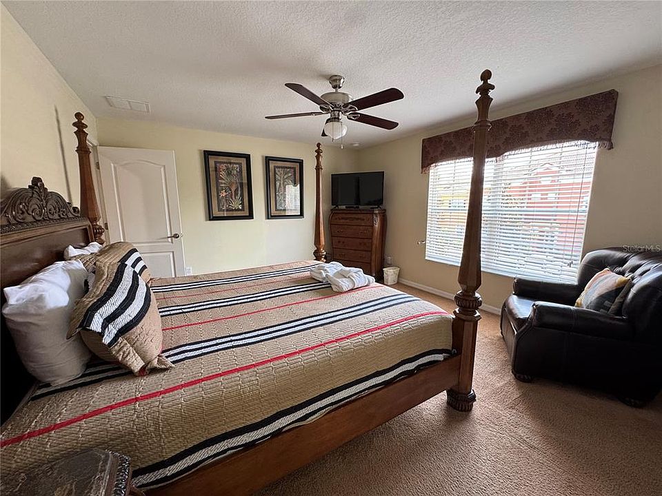 Paradise Palms Resort is a 24/7 guard gated resort style community. The clubhouse itself has a grand feeling as soon as you enter. Inside it has a 48 seat theater, a games room, arcades, fitness center and sundri-shop leading you to their gigantic pool, an aqua play ground, heated spas, outdoor serving areas for eating and drink. Also equipped with a play ground, volleyball court, tennis courts, & baseball court to use. This Coco Palm Townhouse is being rented fully furnished and fully equipped - just bring your cloths and you're home! The unit has it all, tile floors in the main areas, 1 bedroom on the 1st floor plus full bathroom. The primary suite is on the 2nd floor along with 2 other themed bedrooms. Every bedroom has newer TVs, and big screen TV in the living room. The kitchen is spacious and fully equipped while offering stone counter tops, and open to the living room. The dining area has a 6 seat table and the kitchen counter bar has 3 bar stool chairs for those who like the less formal dining experience. This townhouse has its own private heated pool that is screened to keep all of the bugs out. Rent includes valet trash pick up, cable / internet, and pool service! Make this your home in paradise!