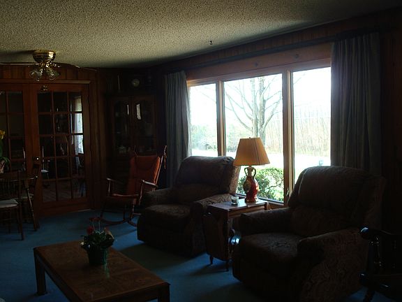 This is a gardener's paradise. (Be sure to take the virtual tour to see the Spring & Summer landscape). Immaculately maintained ranch with a manicured lawn, landscaping and mature trees. New thermopane windows throughout and fully insulated for reasonable utility bills. Newest windows are from Big L with a transferrable warranty. Updated kitchen with lots of cupboards for storage and separate dining room. There are 3 good-sized bedrooms. This house is in move-in conditions and perfect for a small family with lots of space for entertaining and kid-friendly areas. 3 season attached patio with covered outside area for your bbq. There is a full basement which is partially finished with a custom-made bar and cupboards, a perfect area for a pool/game table and lots family fun or entertaining friends. 2 1/2 car garage is located beneath main flloor with entry into the basement with access to the main floor without going outside. There is a concrete driveway, plus another 2 1/2 detached cement garage which is perfect for a workshop or a car enthusiast for storage. Lots of extra space for an office/den plus a large closed in porch area for an extra tv, sewing or hobby room. Window treatments included. Automatic garage door openers on all garage doors. Within walking distance to Flower Field recreation area. Secluded back yard area with grapevines located behind property. Reasonable offers considered.