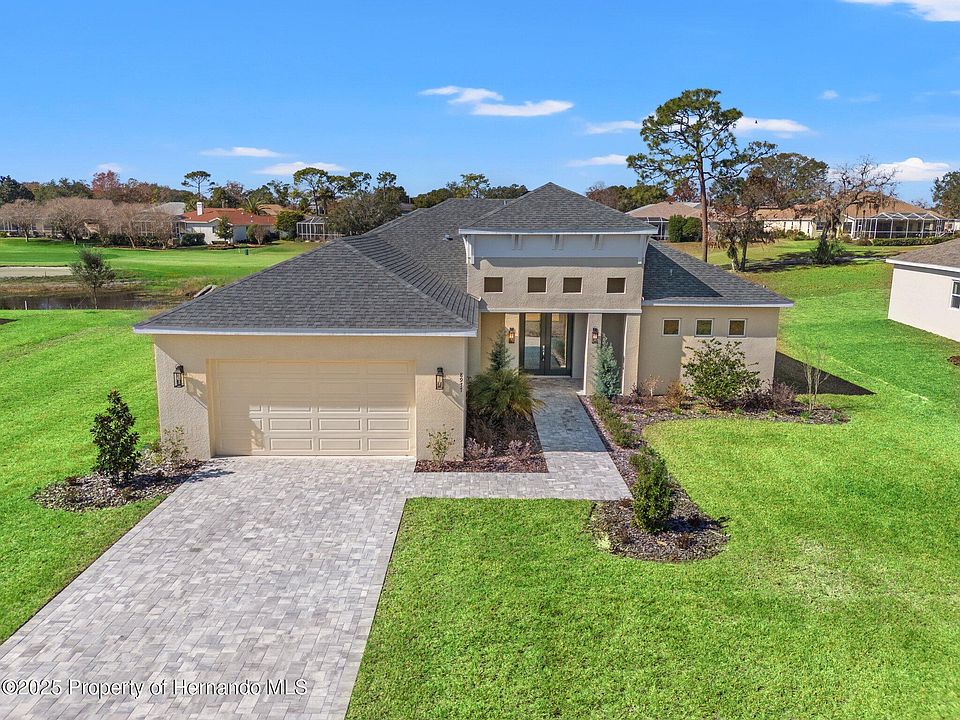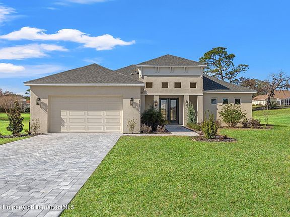 Experience modern elegance with this brand new Home on the Golf Course with pond views located in the exclusive, gated Glen Lakes Golf Course community designed by Master Golf Course Architect, Ron Garl. Enjoy the abundant amenities and clubs the community has to offer. This expansive brand new Santa Barbara model by ARC Florida Homes offers stunning views looking over the tee box of the 13th hole. As you approach, you will be greeted with a beautiful brick-paved driveway and walkway that leads to a stunning 8-foot double-door entry. The grand entrance leads the formal entry into the warm and welcoming living room featuring tray ceilings and triple sliders to the covered brick-paved lanai. The gourmet chef's kitchen is every cook's dream with custom cabinetry, extended quartz counters, stain-less steel Samsung appliances, deep closet pantry and a separate coffee bar counter. The eat-in area offers picturesque views from the expansive windows. This triple split bedroom plan features a huge owner's suite with tray ceilings and feature double walk-in closets. The luxury master bath has a gorgeous tile shower with seamless doors, a free-standing tub and double sinks. The second and third bedrooms are both roomy in size with walk-in closets, sharing the second bathroom with a beautifully tiled shower. The 4th bedroom with its own bathroom is located on the other side of the house, perfect for guests. The 3rd bathroom features a tile shower with frameless doors and double sinks. The dedicated laundry room offers custom cabinetry with solid surface counters and a deep sink. Step out back to your covered porch to enjoy your morning coffee or watch the golfers play from your own backyard. The social & golf memberships of Glen Lakes offer a variety of activities to suit any taste. From the avid golfer to the individual interested in socializing. For the golfers a full practice facility with driving range, putting green and pitching and bunker green allows you to fine tune your game. Along with professionally run golf events, a full social calendar awaits you. The Club offers lighted tennis courts, pickleball, a junior Olympic pool, hot tub, fitness room, playground for the kids, restaurant and bar, games, craft and computer/library rooms, professionally staffed golf shop, fishing with stocked ponds and banquet facilities. Come check out this magnificent home today!