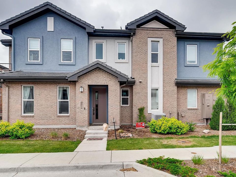 Impressive two story townhouse that includes 3 bedrooms, 2 1/2 baths and numerous upgrades. Beautifully landscaped complex. End unit boasting additional windows, covered patio, and master bedroom balcony. Extensive engineered wood floors and all baths have quartz counters and stone floors. Kitchen includes 42 inch soft close cabs in quartz counters. Convenient to shopping, DTC, light rail, and bus services all close by.
