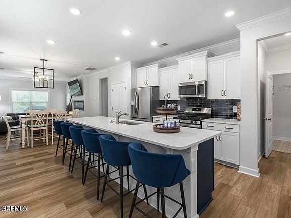 Welcome to maintenance free living at 8978 Plantation Landing Dr., nestled in The Villages at Plantation Landing of Porter's Neck. This stunning home features 4 bedrooms and 3.5 baths with an open floor plan and a modern moody paint scheme. The primary suite is conveniently located on the main level, with 3 additional bedrooms and 2 full baths upstairs. Key features include an electric fireplace in the spacious living area, a large kitchen island perfect for meal prep and entertaining, a gas range fueled by natural gas ideal for the home chef, under-cabinet lighting for enhanced kitchen ambiance, private fenced in back yard, a laundry room on the main floor and powder room for daily convenience. This community is a natural gas community! HOA dues cover wind & hail and homeowners insurance, landscaping, and building maintenance, ensuring a truly maintenance-free lifestyle. Recent enhancements include new interior paint, a full private fenced-in yard, and custom pull-outs in cabinetry. Additional perks include a covered patio, level 3 Burkett Dr 7'' Foresta LVP flooring, upgraded carpet ''Settling Down Perfect Taupe'' in all the bedrooms, hardwood treads, and organic white quartz kitchen countertops. All the best shopping, dining, and beaches are all within 5-15min away. Quick access to the i140 bypass makes everyone's world easier when getting anywhere in town or out of town. Don't miss this opportunity to call this beautiful property your new home!