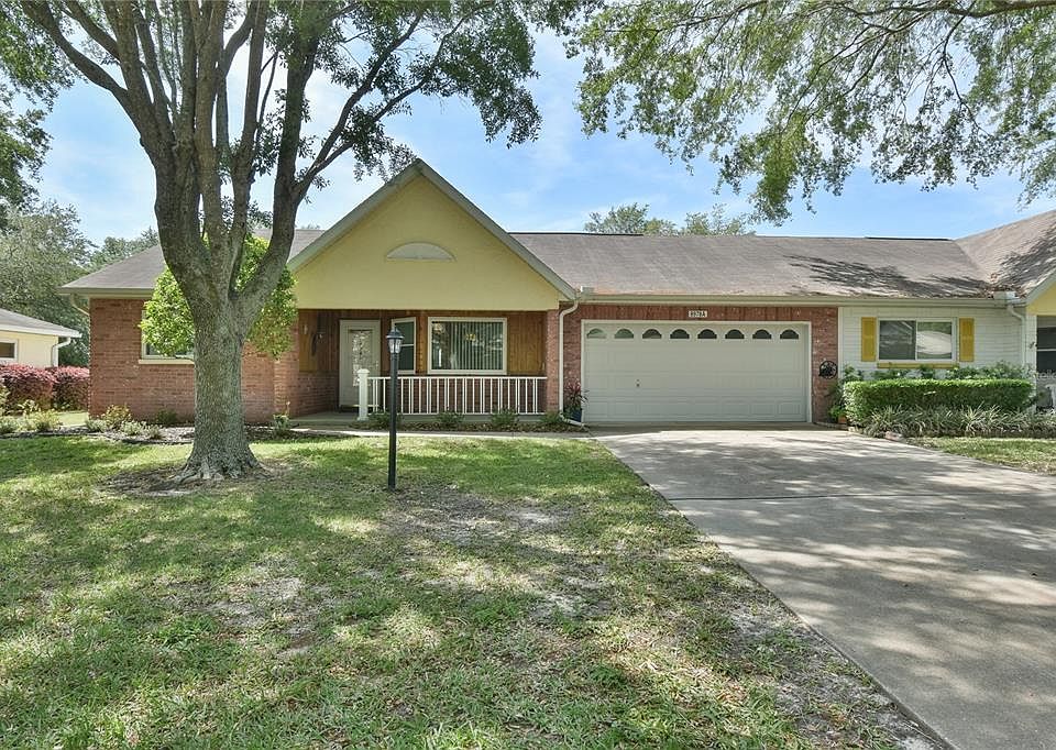 Come and enjoy the Florida lifestyle and easy living in this like new Corinth II located in the desirable 55+ community of On Top of the World. This light and bright 2 bedroom 2 bathroom home features a flex room and a screened sun room. The home feels spacious with vaulted ceilings and a large living area for entertaining and offers privacy with a split bedroom plan. The large master bedroom has a spacious walk in closet and oversized master bath with double sink vanity and walk in shower. This end unit villa boasts many upgrades including *new laminate flooring *ALL new windows throughout home *oak cabinets with granite countertops in kitchen *newer appliances *new AC * Custom blinds in all rooms * new garage door opener. Amenities abound with community pool, fitness center, raquetball courts and tennis courts to name a few. Conveniently located next to shopping, restaurants, grocery stores, hospitals and under an hour to west coast.