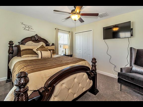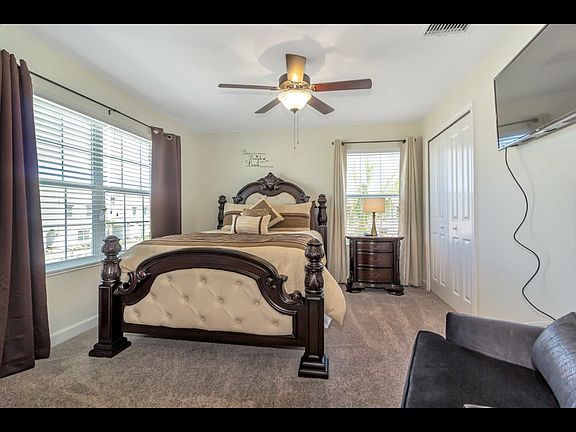 Spacious Townhouse w/pool (Corner Lot) located in the Retreat section of The ChampionsGate Vacation community & Golf Course. Property is minutes away from all theme parks including Disney World, Universal Studios, Bush Gardens and Legoland. The house features 5 bedrooms and 4 full baths. Two master bedrooms with adjoining bathrooms. Wall to wall carpetering and central air. Washer, dryer, refrigerator, and dishwasher are all included as well as all furniture and electronics. Access to clubhouse, community splash park, fitness center, tennis court and golf course. Wired for cable, broadband, and security system. Currently being utilized as a short term vacation rental property with a property management company and through AirBnb. Keyless entry (remote access available).