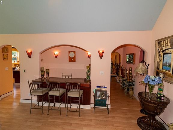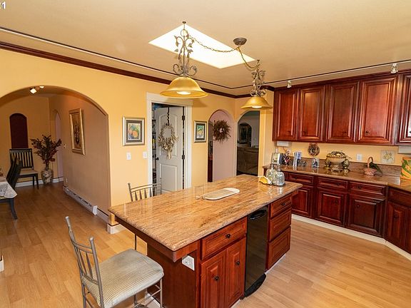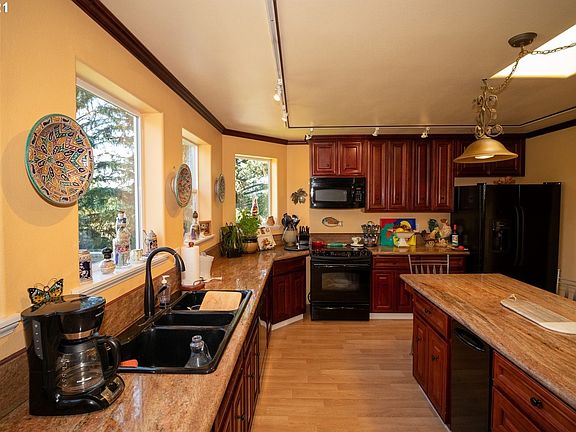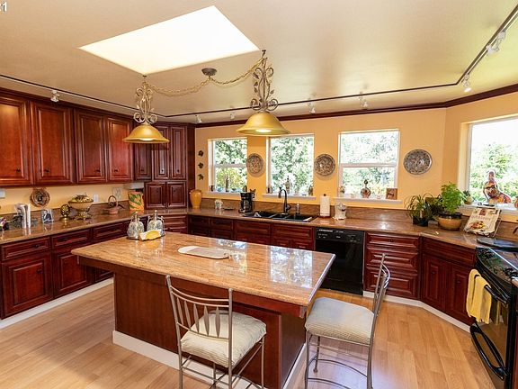 Country Elegance on 5+ wind protected acres. Custom designed home w/stamped concrete entry and top of the line features throughout. Guest suite, formal living, great room w/wet bar. Gourmet kitchen, large center island, granite, cherry finish cabinets. Spacious primary suite w/jacuzzi, granite and walk-in shower. Lower level in-law set up w/kitchenette in 3rd bedroom. Atrium w/slider out to side patio. Separate shared driveway, RV parking, boat garage, and greenhouse. Aprox one acre pastureland.