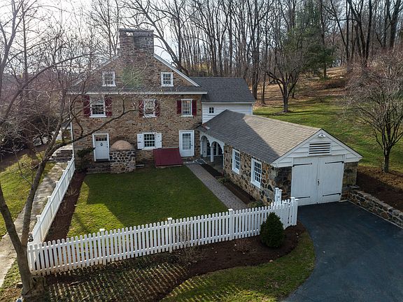 John Hannum III was Commander of the 1st Pennsylvania Battalion during the Revolutionary War and fought in the Battle of Brandywine. Colonel Hannum served in the PA House of Representatives and was a delegate to the PA Convention to ratify the U.S. Constitution. When he came home, he retired to his country property. The Colonel John Hannum House, has a long historical significance in East Bradford Township dating back to 1759 when his father, John Hannum Jr, purchased 292 acres for his son. The original farmhouse, constructed of fieldstone, was built in 1760. It is a classic Georgian style house with a gable roof and flushed chimneys. It features 5 bays (or windows) across the top with a recessed center door with fan and sidelights flanked by two multi-paned sash windows on either side on the first floor. The second addition is a two-story rectangular wing with a gable roof. Attached to this wing is a third banked addition and one-story garage. The drive to the house meanders past a pastoral pond and mature trees. The house~s stately charm is grounded in its history yet its restoration has brought it into the 21st century. A timeless home with classical elements exceptionally preserved, it exudes an easy elegance and warmth that is modern and comfortable. Light filled spaces, generous room sizes, deep window sills with hand blown glass panes, beautifully mellowed hardwood flooring, exposed stone walls, a beehive oven and five fireplaces speak of the warmth of yesteryear. Handsome details run throughout such as entry through the impressive center hall with front and back doors. This welcoming space is flanked by a parlor and study (both with fireplaces) on one side and a spacious Dining Room featuring a large fireplace with beehive oven and Marshall Brinton designed built in cabinetry on the other. The side banked, century-old addition has a brick floored Breakfast Room with a beamed ceiling and ~wine cellar~ offering connections to the garden and nature. Sliding doors on either side open onto a brick terrace or give access to a charming, fenced courtyard. The adjoining Kitchen is well stocked with cherry cabinetry topped with thick granite, high end appliances, oak flooring, an exposed stone wall and a spiral staircase to the second floor. The private spaces upstairs consist of a large Master Bedroom with updated, private en suite opening onto a back hallway with a large walk in closet and access to a 4th Bedroom or dressing room/nursery. The 2nd Bedroom features a Valley Forge marble fireplace, walk-in closet and full bath with exposed stone wall. The 3rd Bedroom is also warmed by a large fireplace. There is hallway access to the walk-up floored attic. The basement is large, bright and dry. Create an entertainment area, playroom or even a studio space. The adjoining areas also house the utilities and storage sections. Recent improvements include the installation of a central AC System. The hardwood floors were refinished, the Kitchen and Breakfast areas were stunningly updated and new appliances installed. The Master Bath was fully updated with a double sink vanity, large glass shower, tub and tiled floor. A walk-in clothing closet with ample shelving was created off the upstairs hallway. Public water, two new garage doors on the separate 2 car garage, new oil tanks, and a new hot water heater round out the list of recent improvements. The new owner will also benefit from newer systems and a 30 yr shingle roof installed is 2006. Sitting in a convenient location allowing access to all aspects of West Chester - business and social - parks, recreation, and shopping. Convenient to major roadways and everything in between. ~Tulip Hill Farm~ evokes a feeling of well being and permanence. This dynamic estate takes the natural beauty of its surrounding, the quaintness of the past and the conveniences of today to create a total living experience.