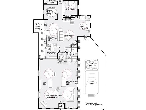 Step outside to a heated outdoor pool with an attached spa, an enormous party gazebo, and a cozy fire pit, all surrounded by gorgeous landscaping. Inside, enjoy custom cabinets, granite countertops, and natural gas logs in the fireplace, complemented by a durable metal roof and wood siding. Entertainment abounds with a pool table and two video games, including a pinball machine. This turnkey property offers endless possibilities for relaxation and fun!