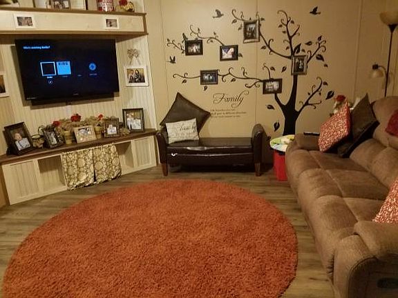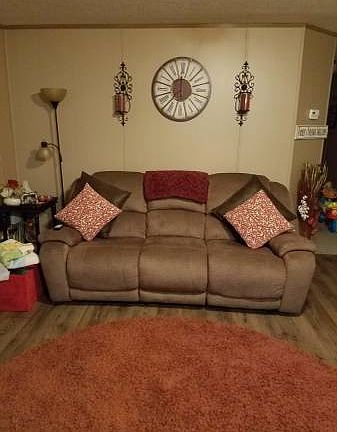 Hi!! We are looking at selling our mobile home. Included will be all appliances including washer and dryer. Inside drum of dryer is missing a few paint pieces due to metal hitting the drum during drying process. Washer and dryer were purchased brand new with the home last year. All the appliances are black whirlpool except for washer and dryer and they are white Maytag. The home is new condition and we will also be including a sofa with the ability of each ends reclined to flat position and recliner. also the area rug seen and throw pillows will stay to and picture frames for the family tree wall. Also the end table seen by the recliner as well as the lamp and all the drapes and drapery rods will stay. We recently added a 10ftx12ft front porch to the trailer so it will go as well it has not been fixed to the trailer but placed directly beside. Plus one set of fiberglass steps for the back door. Simply put we have already outgrown this home and now we are building a house and we are unable to start the building process until this home is sold. The master bedroom has a tile walk in shower 6ftx4ft with a fiberglass bottom. There's a mantel in the bedroom for the TV and we are leaving the hardware to mount your TV in the living room and back bed room. We are also leaving a 20" TV in the middle bedroom. It is a 3 bed 2 bath home with 8 ft ceilings shingle roof and vinyl siding. Its built with 2x6 studs in the walls and 2x4 studs in the door ways and has pex piping with a main water shut off valve above the washing machine. It's beautiful just not big enough for our family. This home would be perfect for a smaller family or a family just getting started in life. We are literally leaving it move in ready. for all the pictures of the home click on the additional link I've provided and it will take you to my craigslist add. Also you can call to schedule a date and time to actually look at the home in person if you would like. 256-609-5995