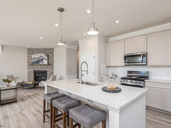 The beautifully appointed, fully landscaped Mercer model is now available for purchase! This quick move-in home features several space-adding options such as a 4’ extended garage & gathering room. Upgrades include LVT flooring throughout main level, wrought iron spindles at the staircase and wainscotting in the foyer for a rich & inviting 1st impression. The stylish kitchen with SS whirlpool appliances, gas cooking range, and a large quartz island marries function with style! Plus, with the Pulte Planning Center and the built-in boot bench at the entry, your home will stay organized & neat amongst life’s daily chaos. The Café flows into the bright, spacious gathering room with a stunning floor to ceiling stone fireplace. Upstairs are 3 bedrooms with walk-in closets, and a spacious loft perfect for sleepovers or family movie night! The owner's suite features a morning room, tray ceiling, huge walk-in closet, ensuite bathroom with quartz double vanity, tile shower, and matte black fixtures. The open layout is perfect for entertaining or family gatherings. Buying a model is the best way to get all the bells & whistles including all the attached light fixtures, window treatments, wall hangings, and a fully landscaped yard with irrigation at an unbeatable price! Plus, with modern tech features such as keyless entry, wifi enabled thermostat, and whole house audio & security you can be the CEO of your household right from your smartphone. Make lasting memories in your Mercer home!