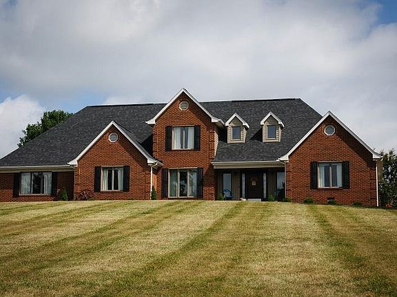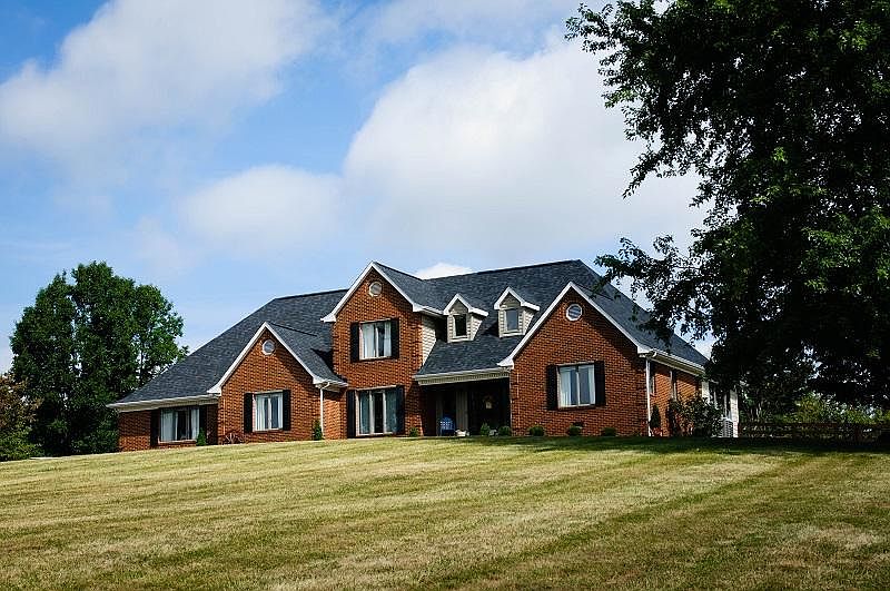 Breathtaking views from this maintenance free all brick unique custom built two story home situated on a manicured 3.5 acre lot. This home boasts 4,300 sq. ft, 4 bedrooms (with 2 master suites on the first floor), office, bonus room, sunroom, 3 1/2 baths and a spacious renovated kitchen. Natural gas appliances and lots of walk-in storage. Fabulous neighborhood and schools. See floor plan under documents.