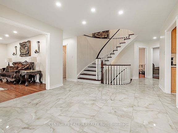 Fully upgraded 5-bedroom Royal Home in prestigious Stonehaven - one of Newmarket's most sought-after communities. Nestled on a premium 1/4 acre lot, this exceptional residence offers over 5,500 sq.ft. of luxurious living space. Elegant, functional layout showcasing a grand foyer, spacious dining room overlooking the backyard, formal living room with bay window, family room facing backyard, an office on main floor, and a gourmet kitchen with custom cabinetry, quartz countertops, stainless steel appliances, breakfast area, and walk-out to a private backyard oasis with sun deck and in-ground pool. The finished basement with separate entrance features 3 bedrooms, a full kitchen with stone island, generous recreation and games areas - perfect for extended family or income potential. Many upgraded to list: all windows (2024), marble flooring (2024), appliances (2024), 4 bathrooms, roof, A/C, furnace, security camera system, pool equipment & more! Two separate laundry rooms (main & basement). Located in an exclusive enclave of fine homes, steps to parks and trails, close to shopping and public transit, and zoned for top-rated schools. A true forever home in a prime location - not to be missed!