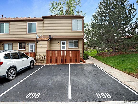 Most popular private end unit with 2 Primary bedroom suites perfect for roommates. Private, quiet location with an attached Greenbelt. 2 attached parking spaces off of fenced deck. Newer luxury vinyl flooring on main level with newer carpet and fresh paint upstairs. Relax in the living room with the cozy wood burning fireplace in the living room while enjoying the Greenbelt. Enjoy all the Highlands Ranch offers with the award winning schools, 4 awesome recreational centers, miles and miles of biking and walking trails and quick access to shopping, breweries, restaurants and 470.