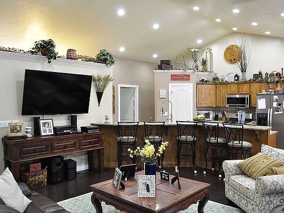 Don't Miss Your Opportunity To Call This Immaculate House Your Home! Vaulted Ceilings, Granite Counter tops, Travertine Tile, Master Suite, Large 3 Car Garage, Cul-du-sac, Mother-in-Law Suite with Covered Patio and Walk Out Basement. 2 Furnaces & 2 Water Heaters. Close to Schools and NEW Ridgeline High School!